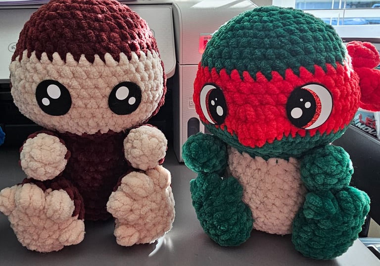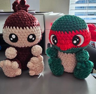 Greetings Friends, I'm Rose, and my passion is creating. I've been diving into various hobbies since childhood. My latest fascination, as you may have guessed, is CROCHET PLUSHIES!!! I began my crocheting journey in April 2021, putting aside my handmade cards, paracord creations, and resin crafts. These charming little beings each have unique personalities, made from soft chenille yarn and perfect for cuddling.